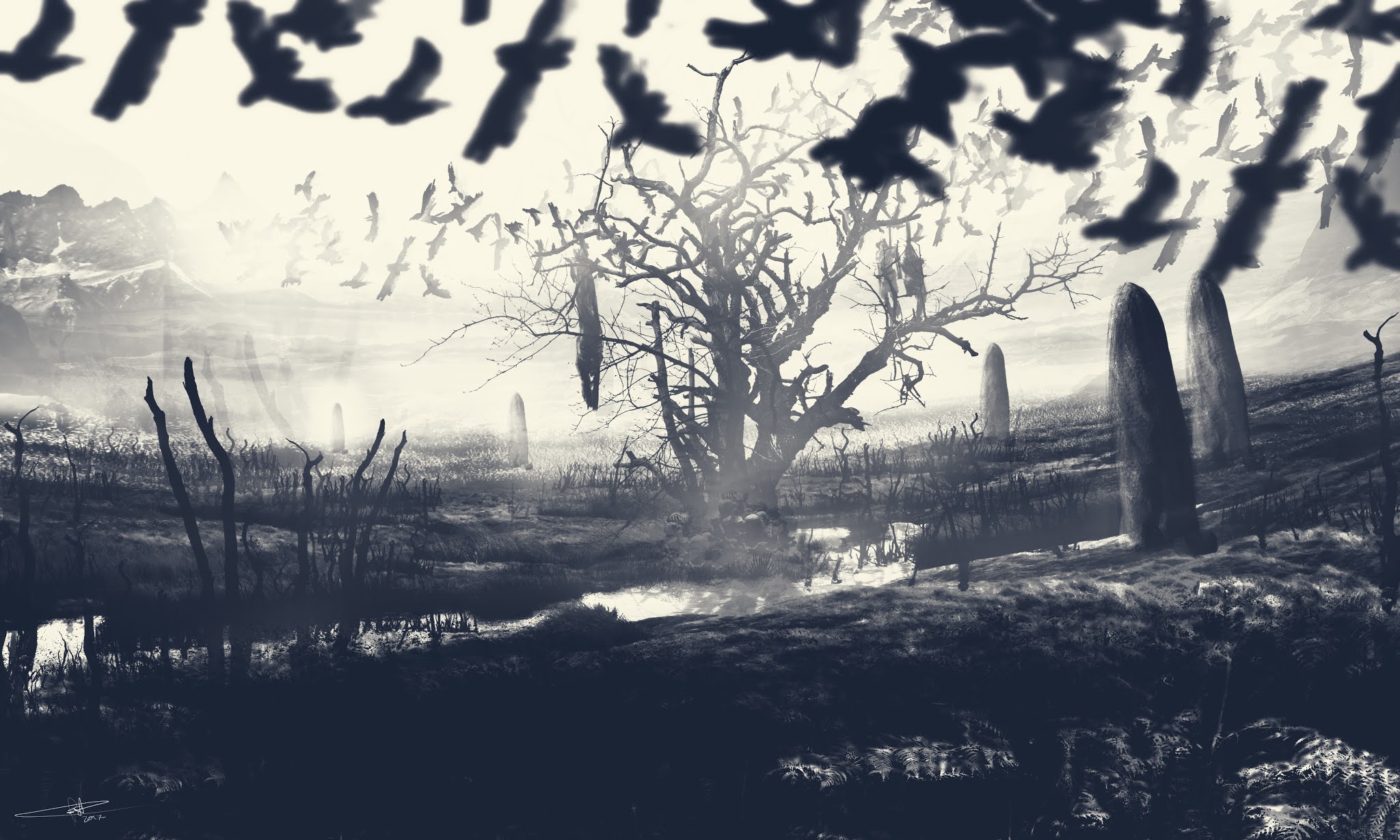 Ad – Hay varios trabajos que me han sorprendido a mí mismo. Son aquellos en los que he notado un salto cualitativo importante. Entre los Mattepainting el primero en que conseguí (pese a todos sus fallos) lo que buscaba fue La Gran Serpiente, que concebí para mi juego de rol. Este trabajo recibió muy buenas críticas por parte del enorme Carles Marsal, que es de quien aprendí las técnicas necesarias para realizar este tipo de obra.